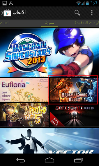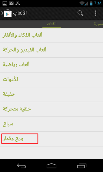 باختيار الزر الأخضر الأول ستظهر لك شاشة الخيارات: