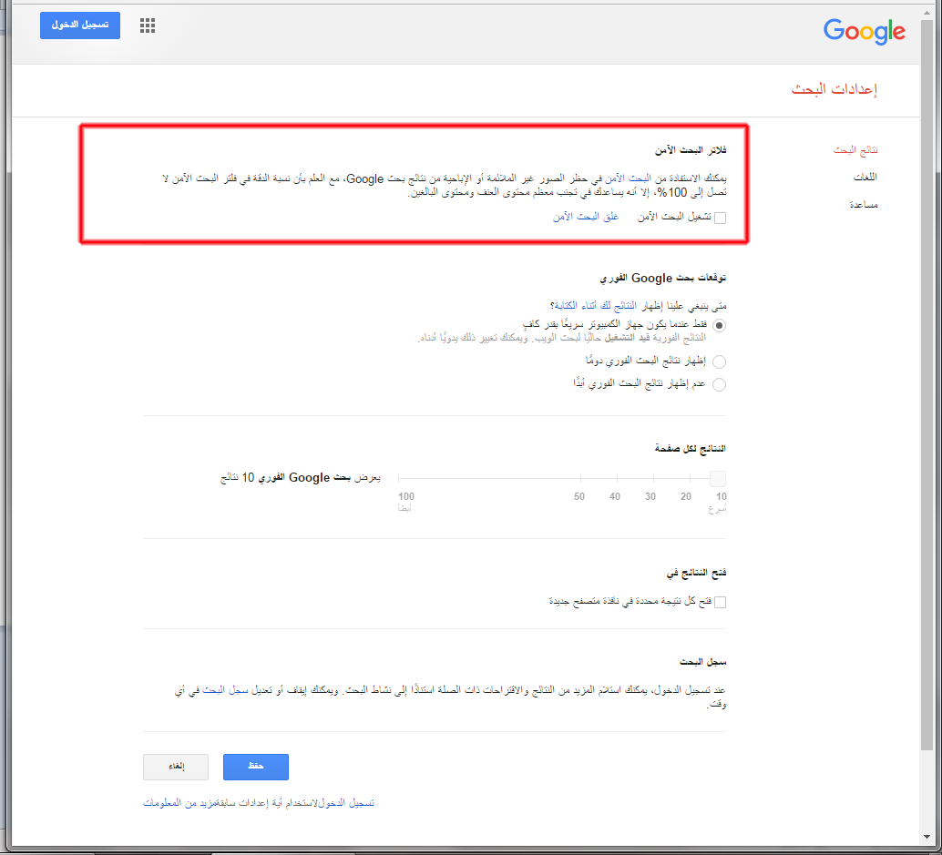 ضبط خاصية البحث الآمن على أجهزة الكمبيوتر